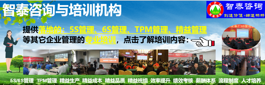 深圳市智泰企業(yè)管理咨詢有限公司又把日本式的TPM管理上升到全員流程管理:T(Total)全員包括生產部門及管理部門等在內的公司全體人員的全員參加;P(Process):流程包括生產、財務、計劃、采購